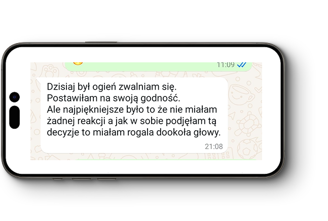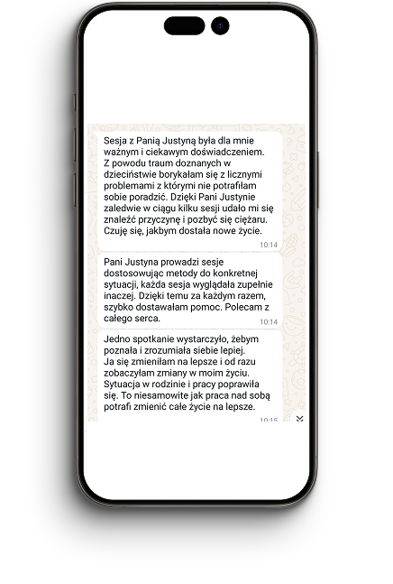 Dzięki Pani Justynie zaledwie w ciągu kilku sesji udało mi się znaleźć przyczynę i pozbyć się ciężaru.