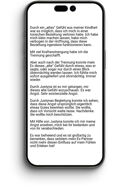 Dank Frau Justyna ist es mir bereits nach wenigen Sitzungen gelungen, die Ursache zu erkennen und die Last loszulassen.